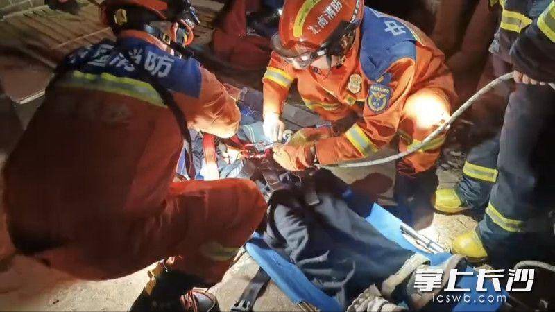 消防救援人员到达现场后了解到,深坑救援空间狭窄、环境复杂,救援难度较大。指挥员立即下达指令,成立一支救援小组,命令三名消防员往深坑口制作锚点,由一名经验丰富的消防员系牢安全绳,通过安全绳索降缓缓下降至深坑进行救援。针对现场复杂情况,消防员先对深坑底杂物进行清理,沿着墙壁稳固架设六米拉梯。消防员用安全绳将自身与小女孩固定,小心翼翼地全程在小女孩后方托举其身体,以防止伤者在转移过程中发生意外。经过十几分钟的紧张救援,小女孩被安全转移至地面,随后四名消防员将其抬上担架,移交现场医护人员送医救治,目前小女孩已无生命危险。