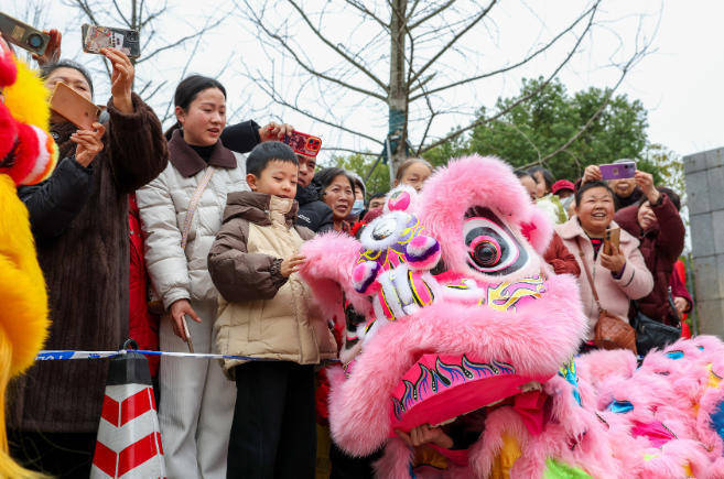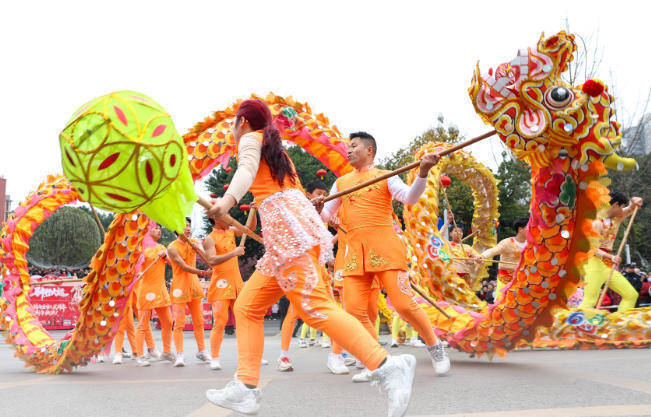 伴随着激昂的鼓点,金龙翻腾、雄狮跃动,云童舞、连响、腰鼓、花车、旱船等民俗表演精彩上演,巡游队伍穿梭在思源广场及周边街道,引得大家驻足围观、互动,掌声、喝彩声不断。