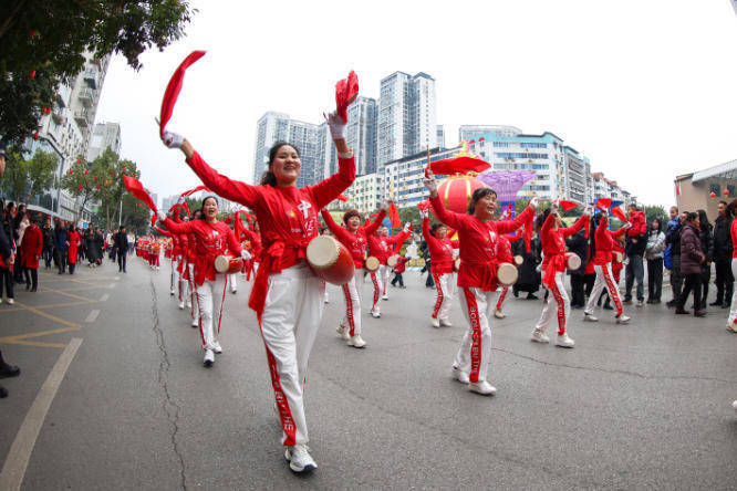 大年初一(2月17日)上午,广安思源广场锣鼓喧天,热闹喜庆的“龙腾賨城·狮舞新春——千龙千狮闹新春”民俗巡游活动在此开展,重现了地道中国年的热闹氛围,也为小平故里增添了浓郁的年味。